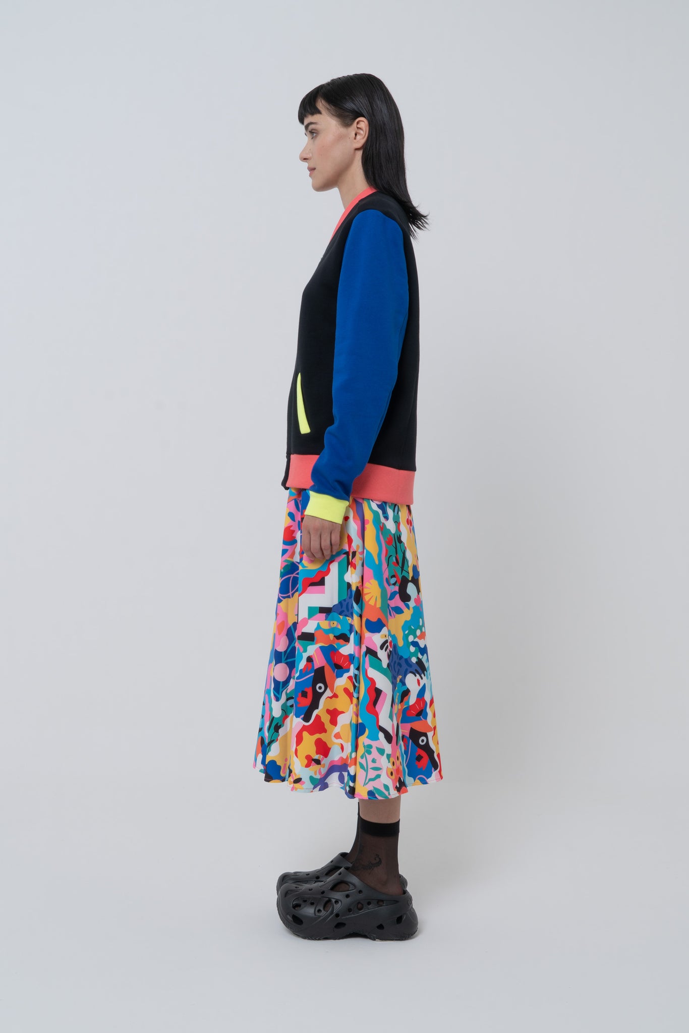 Warm and oversized hoodie dress with colored pockets on the chest. Adjustable waist and trekking lace in the waist belt and hoodie. Iron caps as closure of the lace.