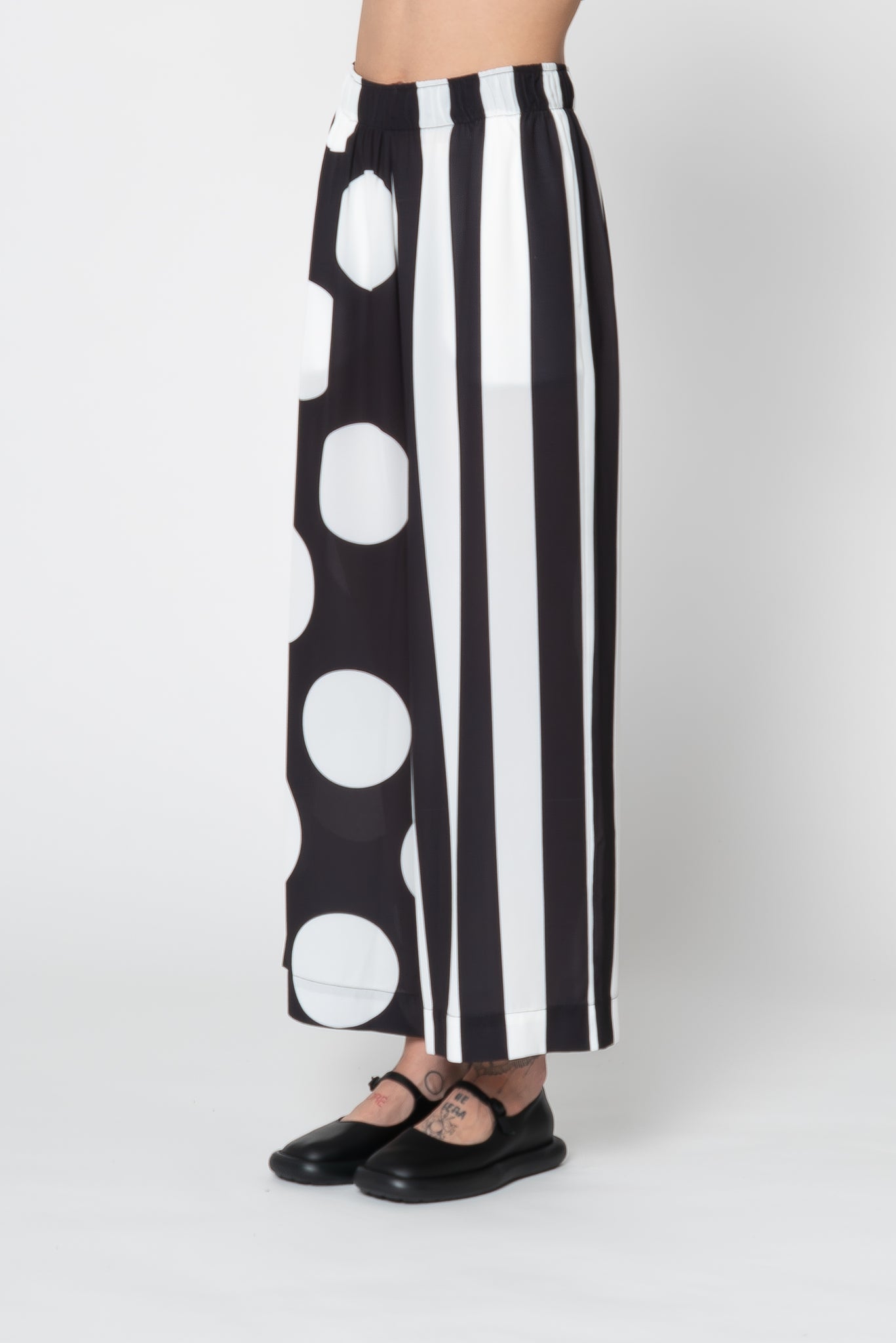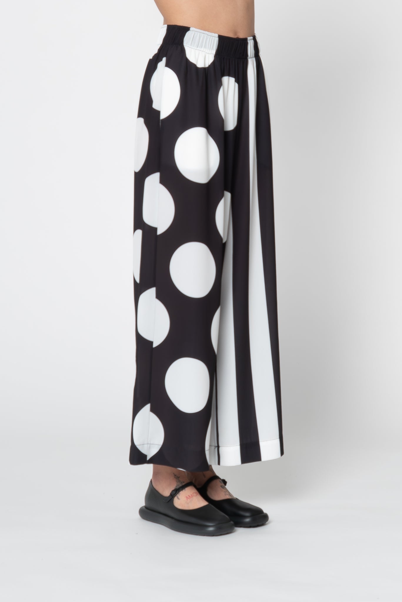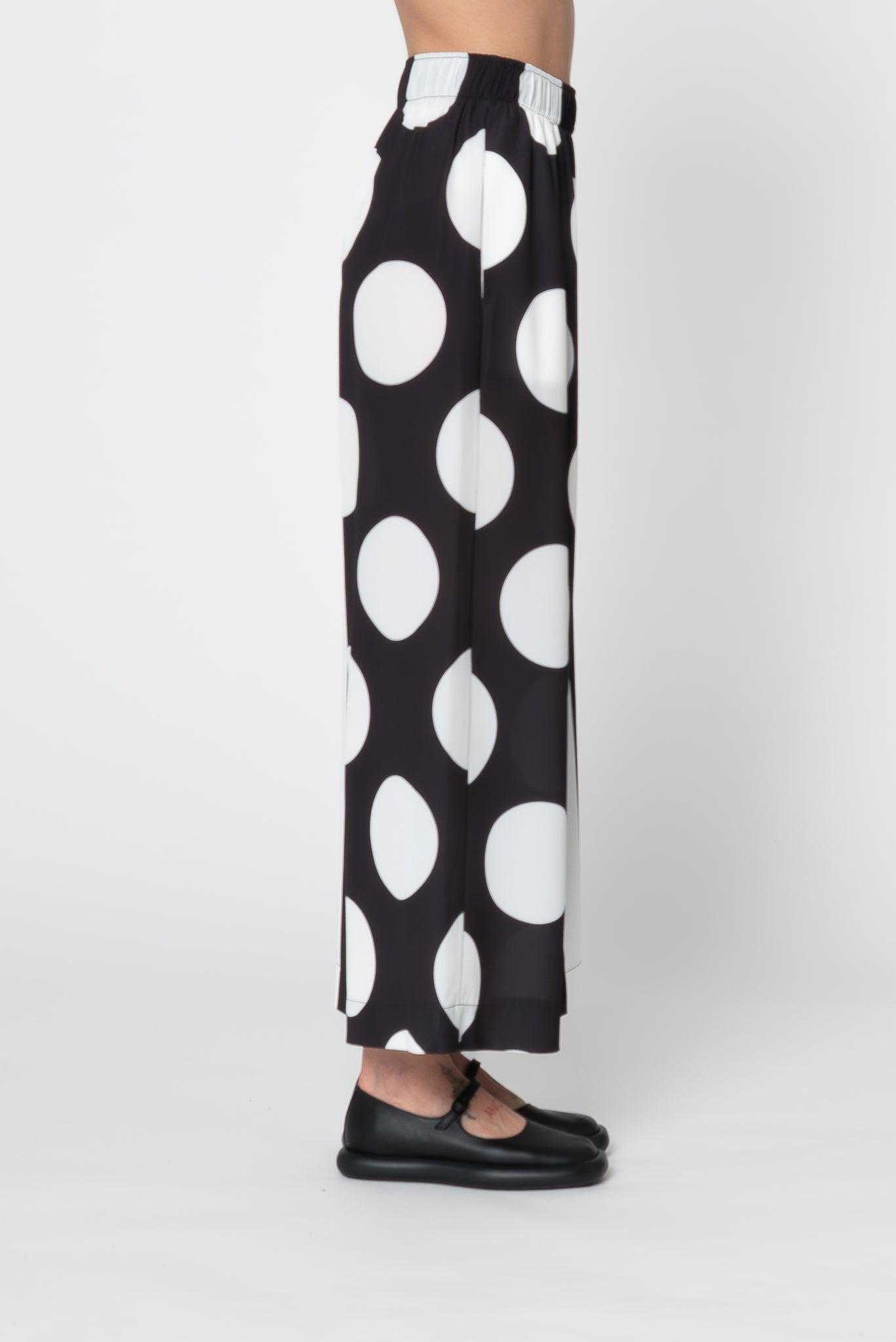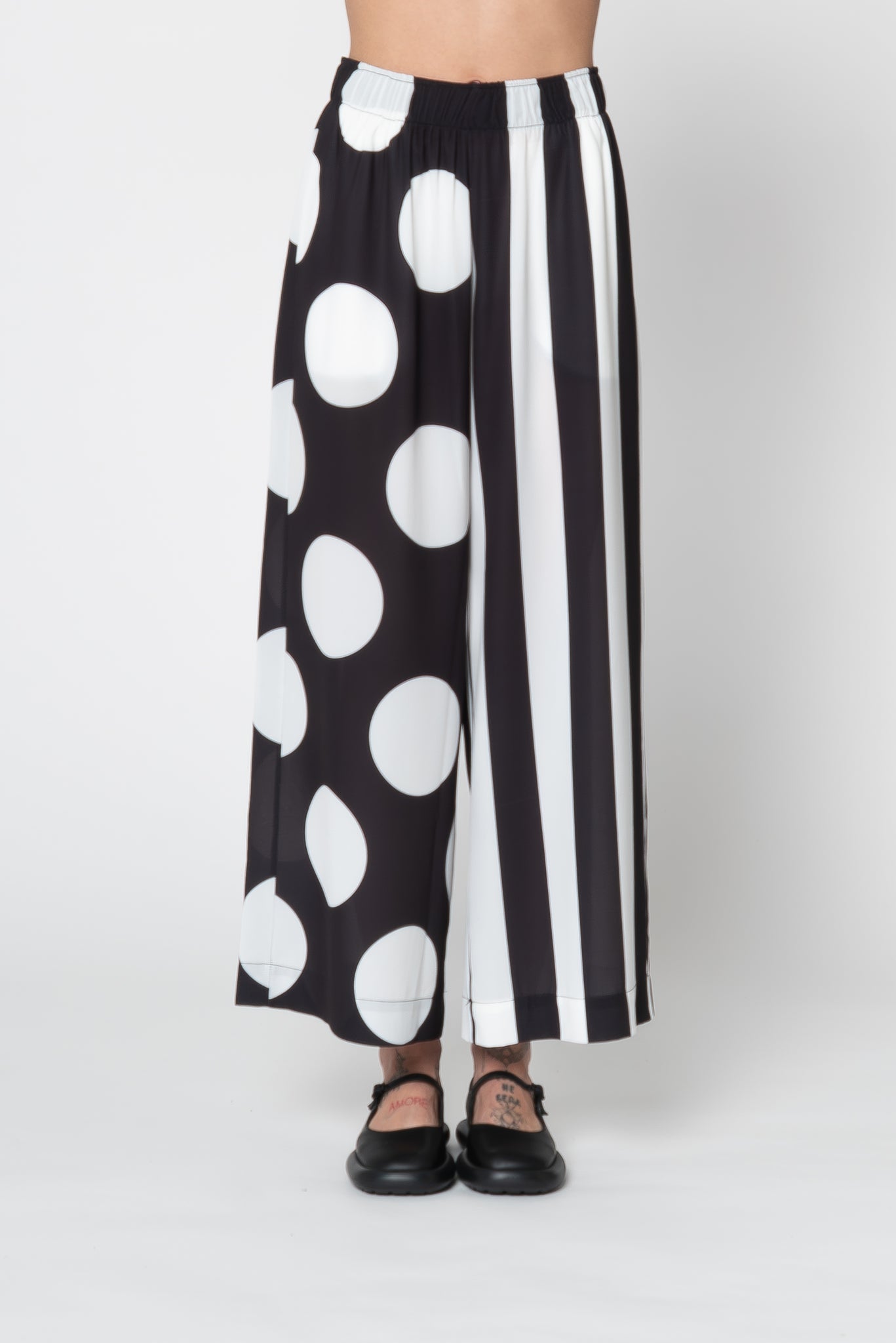 Palazzo pants made of a fresh and light georgette. High elastic belt and pockets. Ankle length or below the ankle, depending on the heigh. Iva in the pic is 1,74 mt tall.ABC serie.