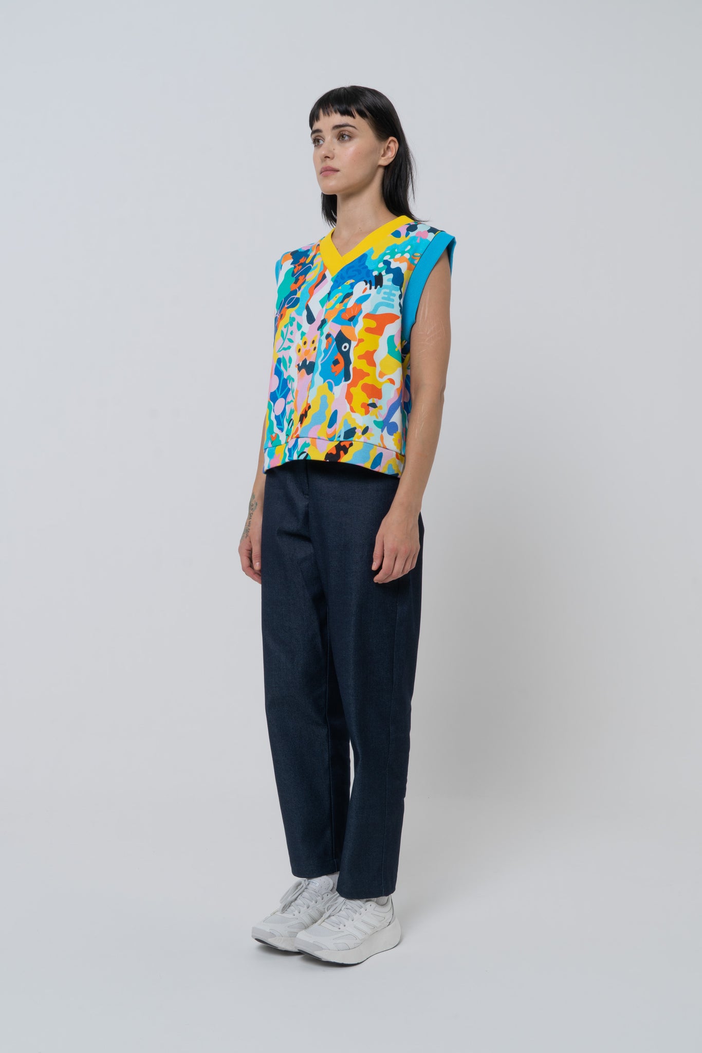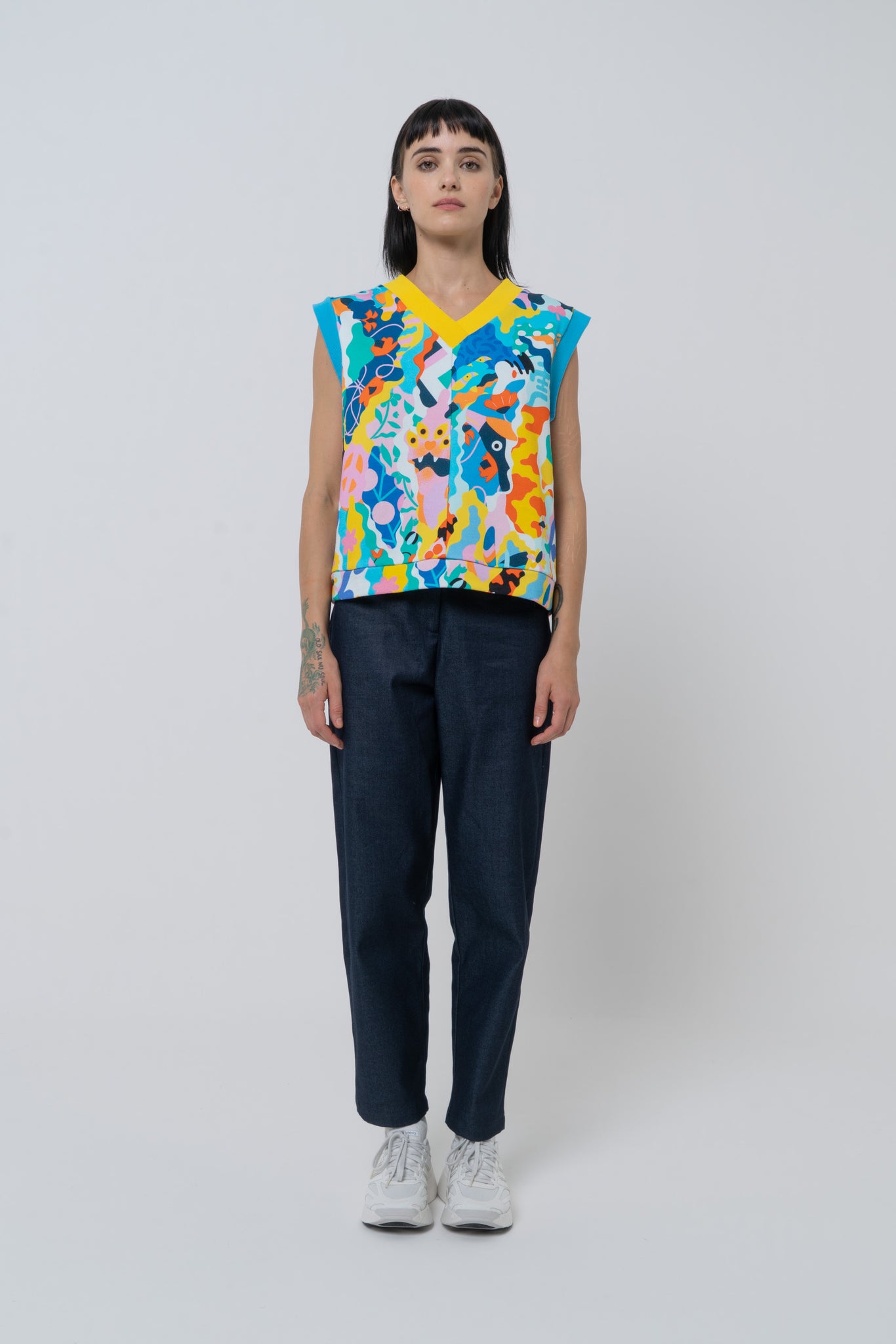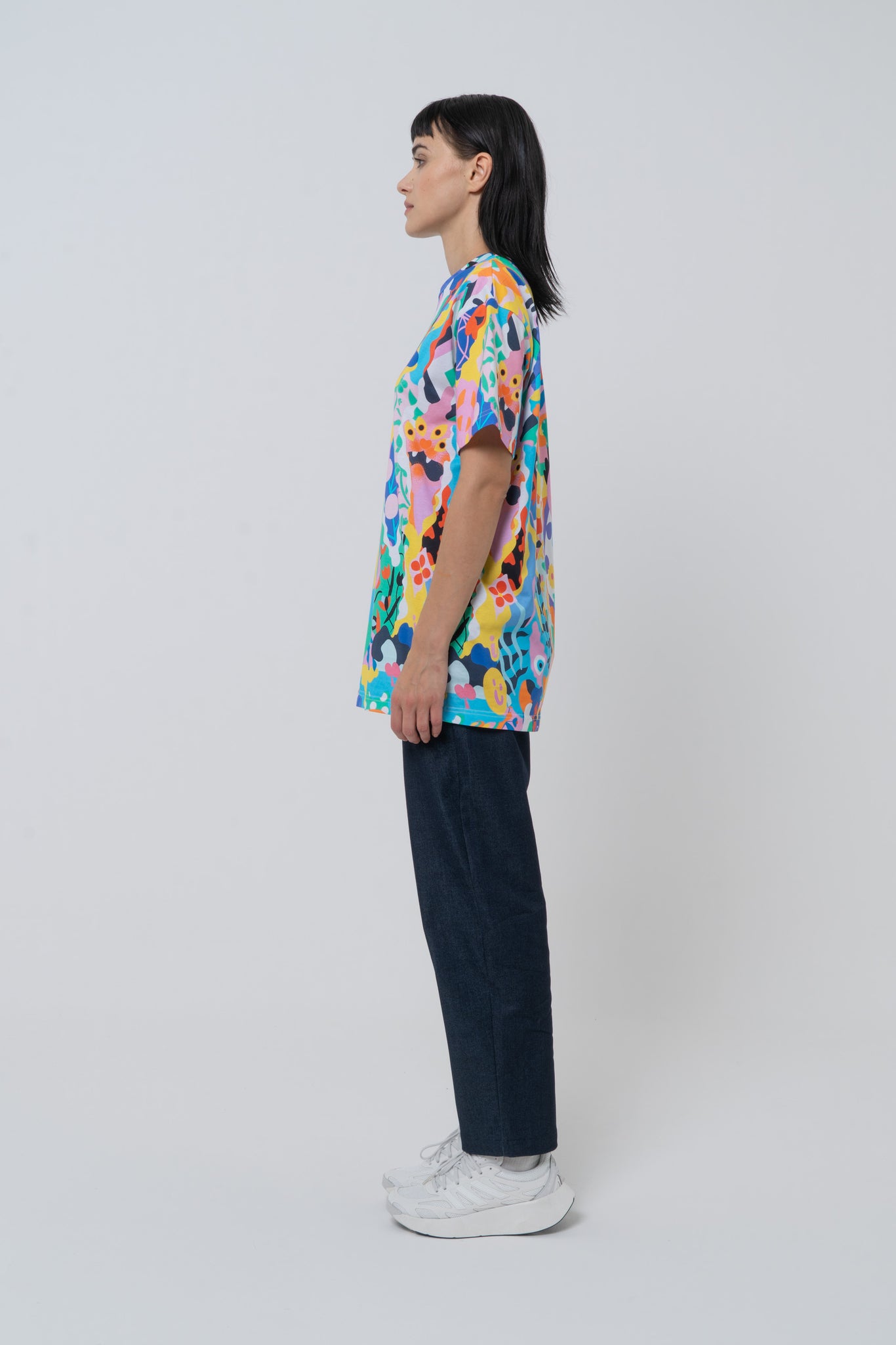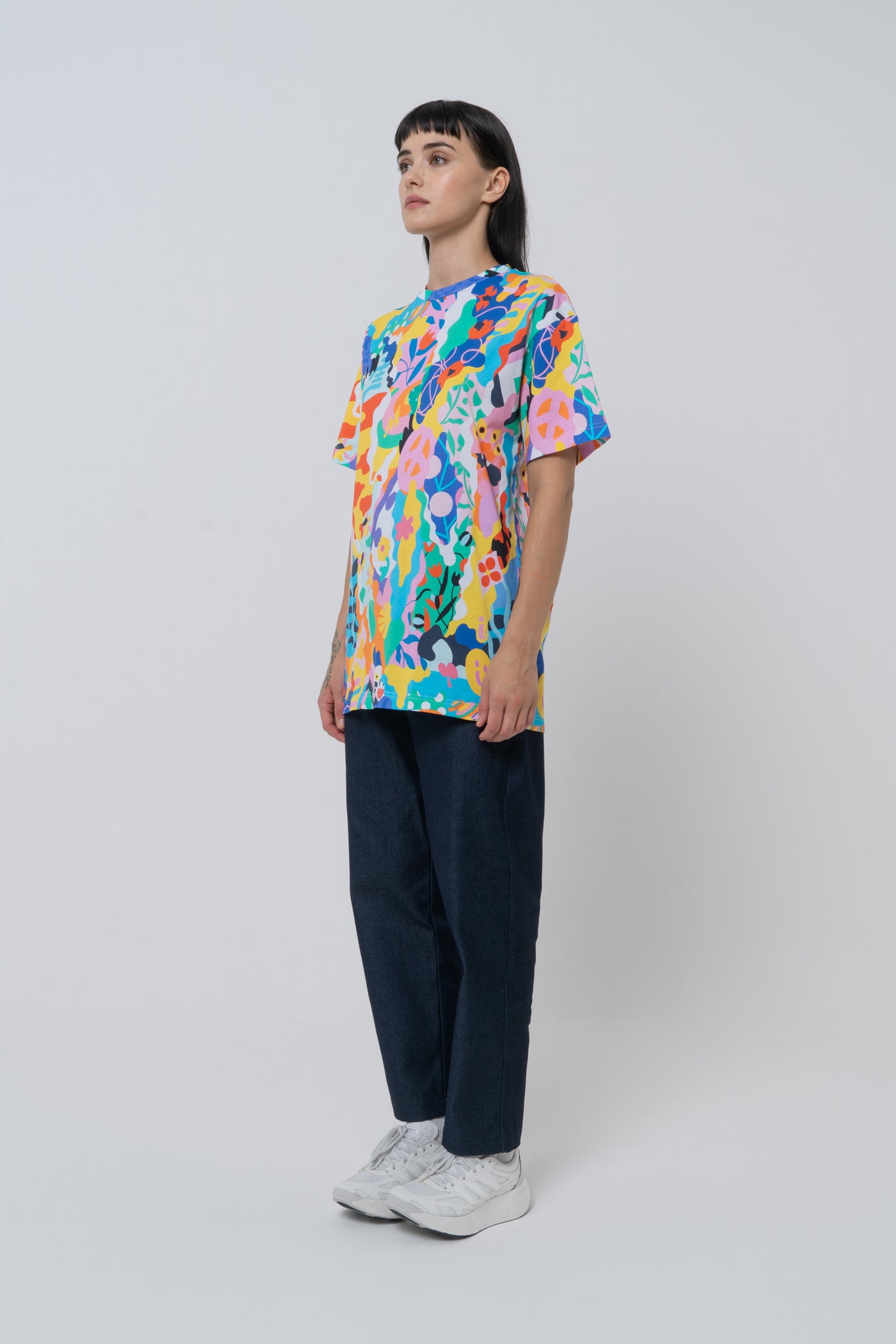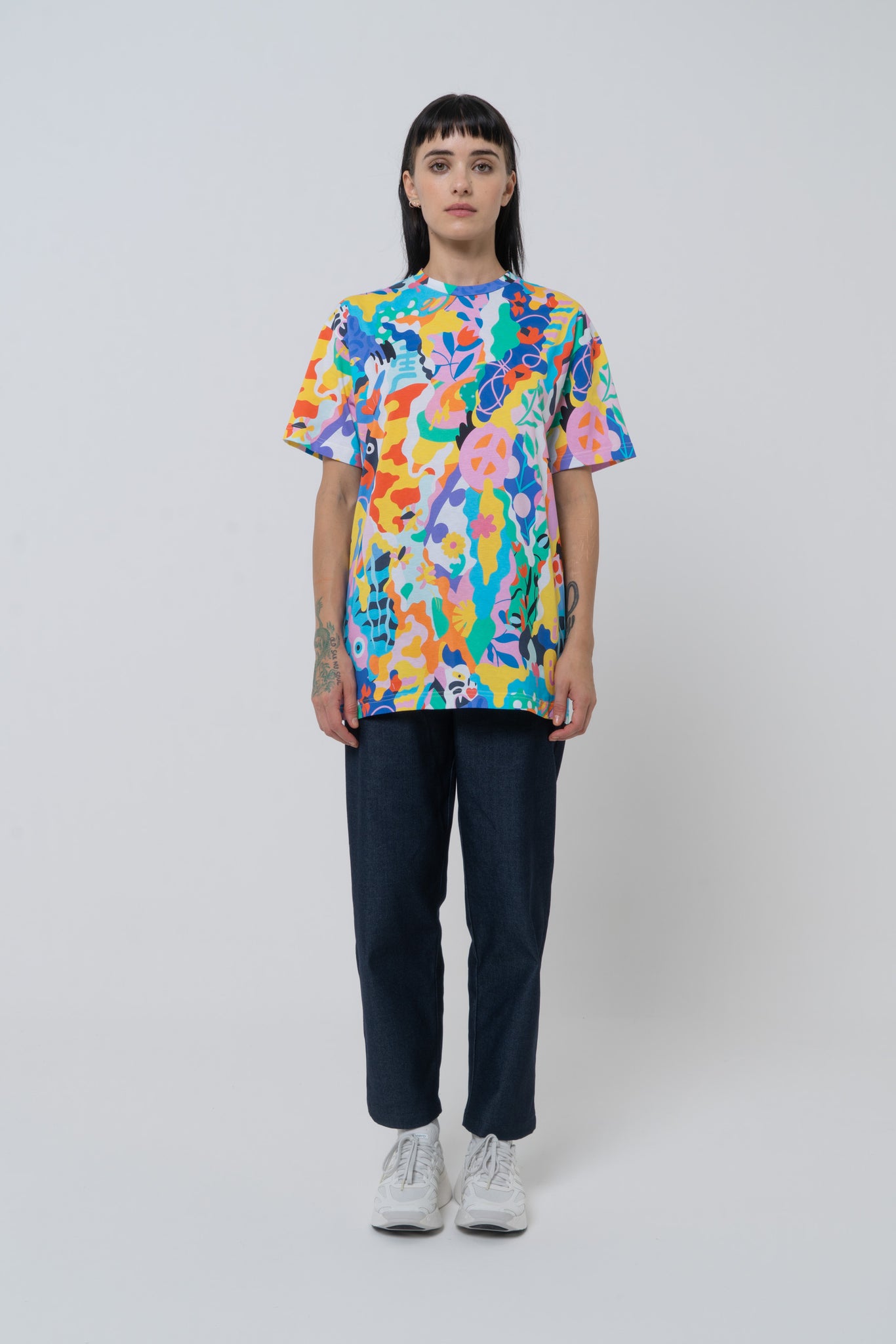 Printed cotton unisex t-shirt. Loose fit. The S size fits properly as an S for men. Iva in the picture is a 34 Eu size and wears a size S. Print design by Brolga
